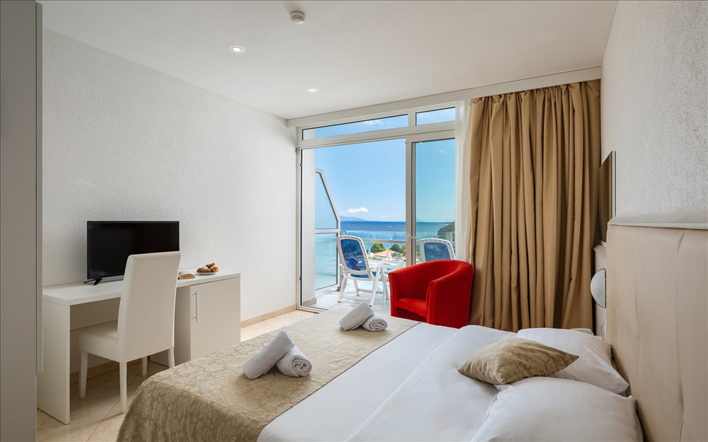 Le camere sono dotate di servizi privati, asciugacapelli, aria condizionata, telefono, TV satellitare, frigo e cassaforte. Le camere lato mare godono di balcone con vista mare laterale.